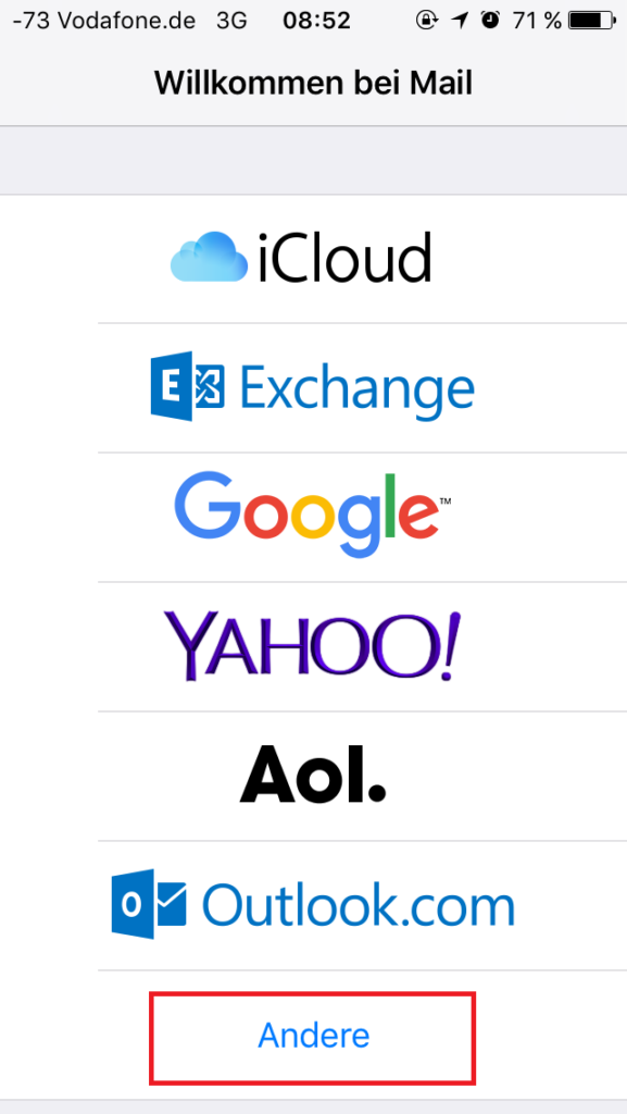 Zum erstellen eines neuen Kontos tippen Sie auf das „Mail“-Symbol und dann auf den Punkt „Andere“.