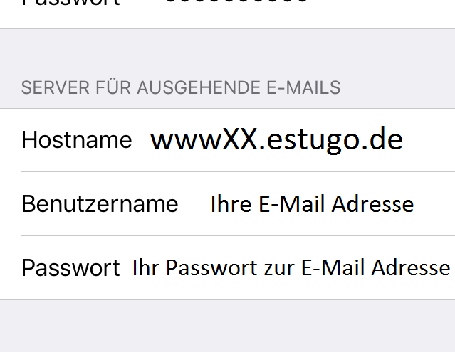 Server für ausgehende E-Mails: Servername (z.B.: wwwXX.estugo.de)