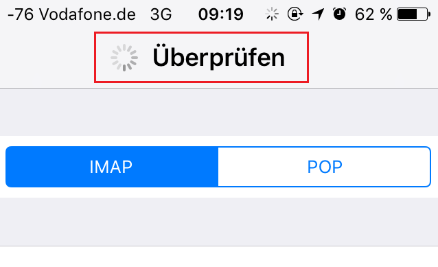 Wenn Sie alle Felder befüllt haben so tippen Sie oben rechts erneut auf den Punkt „Weiter“. Im nächtsen Fenster sehen Sie das Ihr Gerät die Einstellungen überprüft.