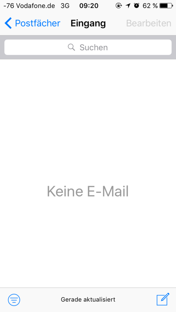 Nach erfolgreicher Einrichtung werden Sie direkt in den Posteingang geführt, welcher sich je nach Menge der sich dort befindlichen Mails synchronisiert oder die Mails herunterlädt.