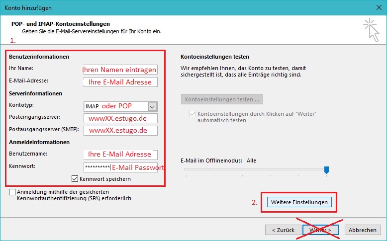 Posteingangsserver: Servername (z.B.: wwwXX.estugo.de)