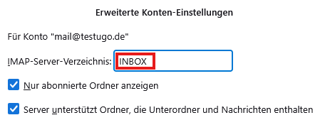 Nun tragen Sie im Feld IMAP-Server-Verzeichnis: INBOX ein. Dann mit OK bestätigen. Wichtig ist, dass Sie Thunderbird danach neu starten. Erst dann wird die Änderung sichtbar.